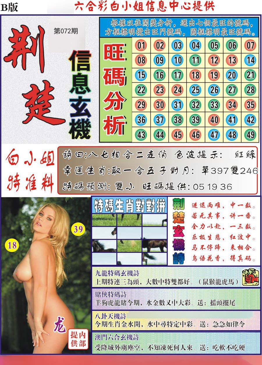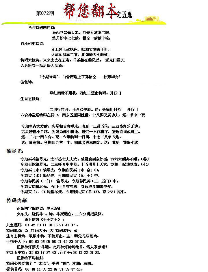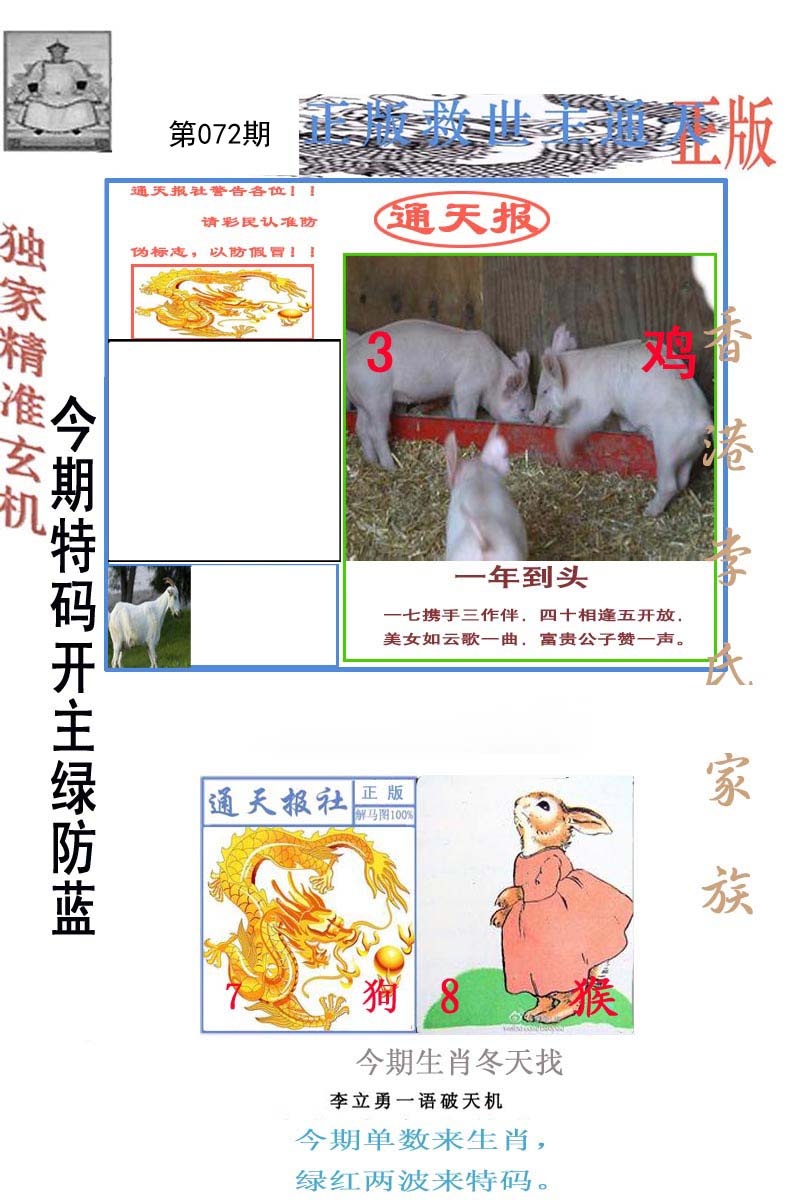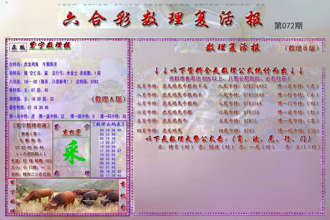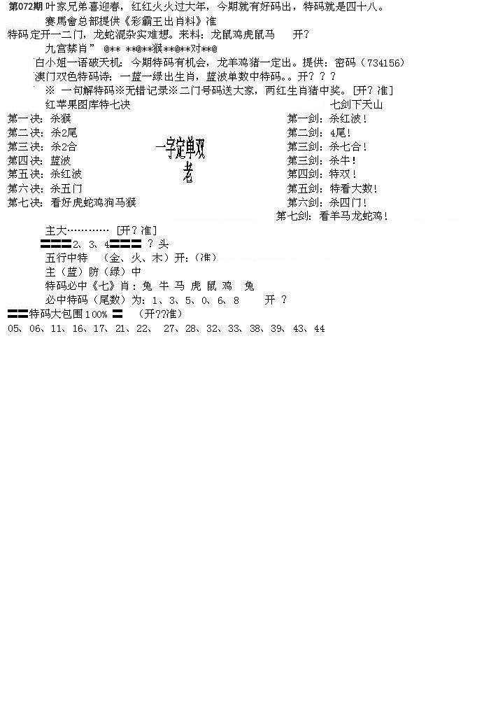 | 072期二肖:鼠龙 | 二码:07.03 |