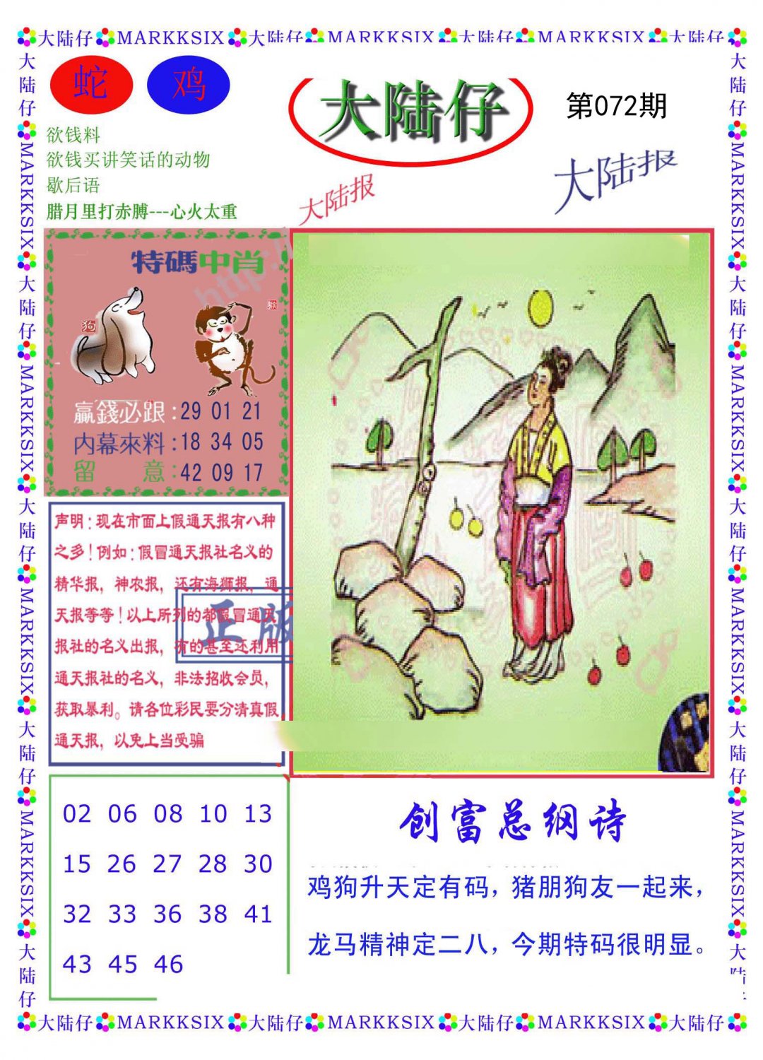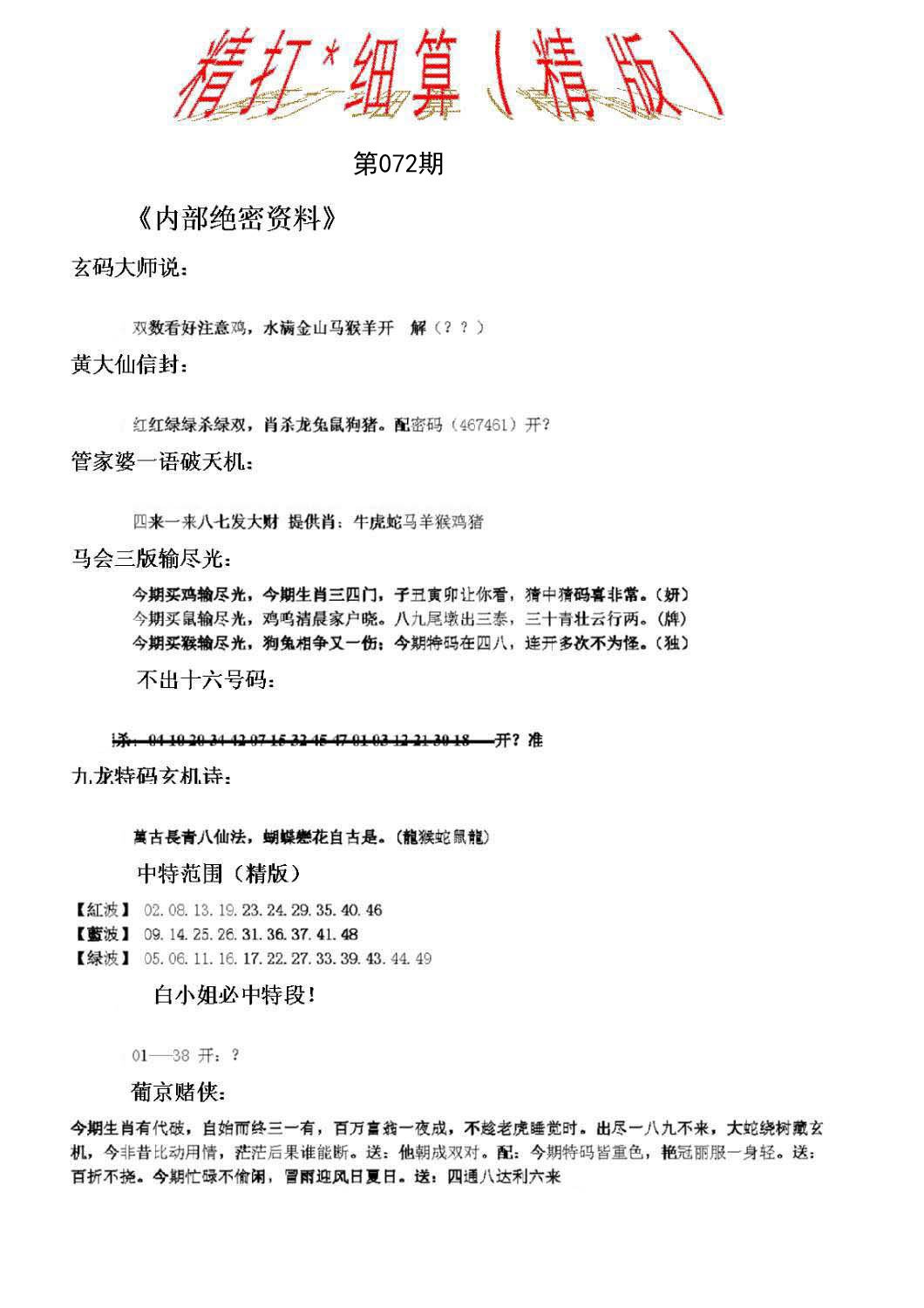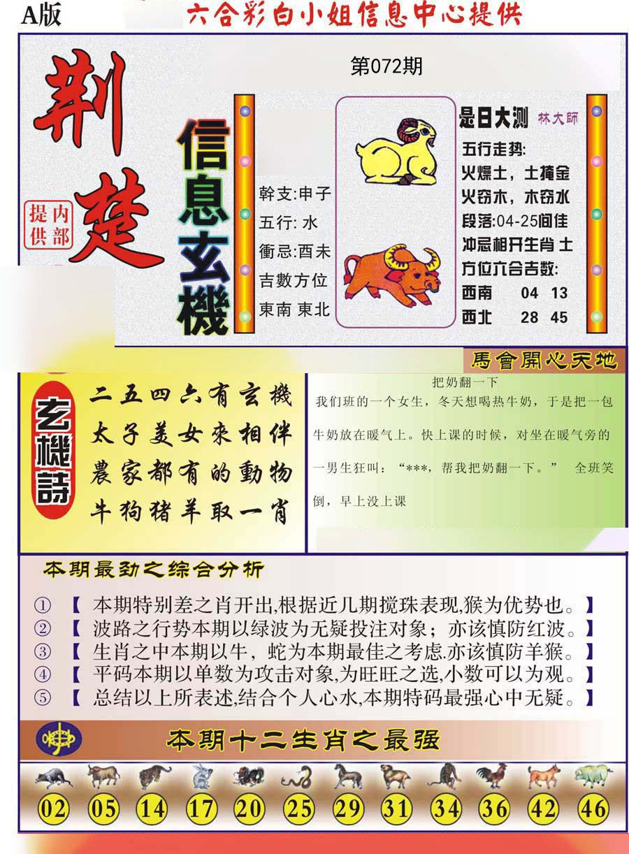 | 072期二肖:鼠龙 | 二码:07.03 |